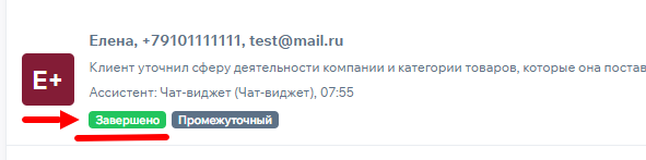 Статусы разговоров назначаются системой автоматически.