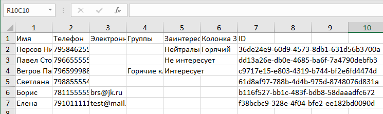 Все строки, в которых совпали ID или номера телефонов, будут переписаны в соответствии с загруженным файлом.