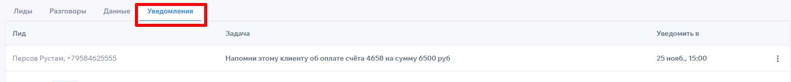 На вкладке "Уведомления" расположены микрозадачи по отдельно взятым лидам.