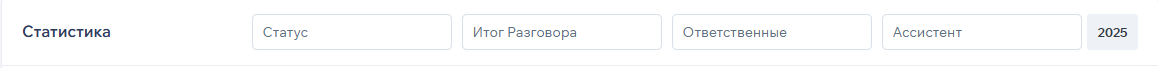 Над графиком находятся фильтры, позволяющие построить график по отдельно взятому статусу разговора, итогу разговора, ответственному за разговор или ИИ-ассистенту (каналу). Фильтры можно комбинировать между собой - например, посмотреть график всех удачных разговоров ответственного сотрудника.