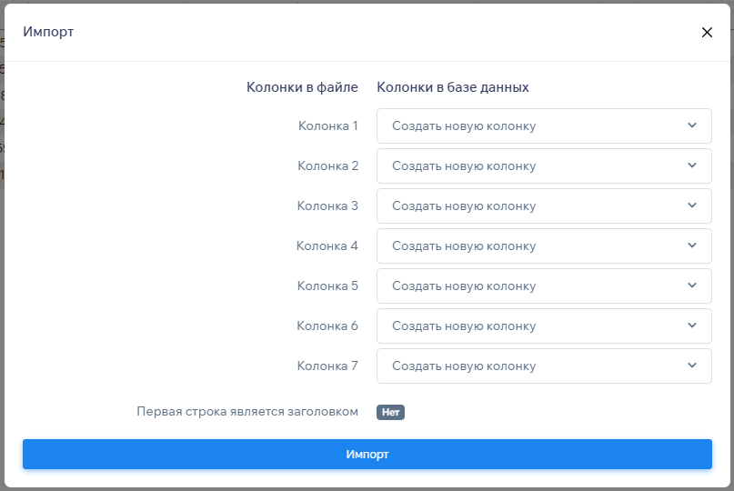 На этапе загрузки файла можно будет распределить колонки из файла по колонкам в системе. Если ни одна из существующих в системе колонок не подходит для той или иной колонки в файле, можно будет создать новую колонку. У созданной в системе колонки вместо заголовка будет прописан её порядковый номер, например, "Колонка 8". Заголовок можно будет отредактировать, нажав на соответствующий значок в нём: