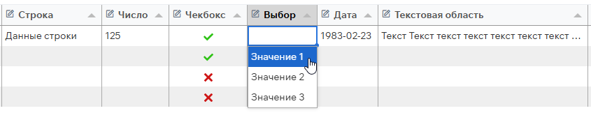 - Тип данных. Это может быть строка, число, чекбокс (варианты true или false), выбор из заданного списка, дата или текстовая область (объёмной многострочный текст).