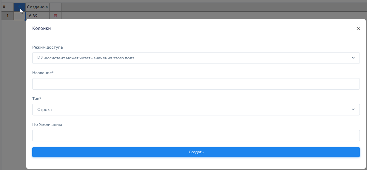 - Режим доступа. Укажите, может ли ИИ-ассистент только читать содержимое колонки, либо и читать, и менять его, либо закройте доступ ИИ к этим данным, если они предназначены только для внутреннего использования.