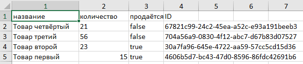 В нём будут все имеющиеся колонки, а также дополнительная колонка ID, которая не отображается в таблице в eVa. Эта колонка предназначена для последующего переимпорта - массового изменения данных. Она всегда является последней.