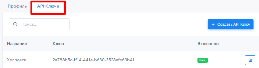 На вкладке API-ключи можно создать ключ для сторонней интеграции. Их может быть несколько, чтобы отслеживать выполнение разных программ под разными ключами, а также отозвать какой-то из ключей по необходимости.