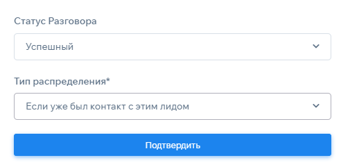 Выберите статус итога разговора, который будет распределяться на сотрудника. Изменить список статусов вы можете в Панели управления в разделе "Инструкции", нажав на редактирование итога разговора.